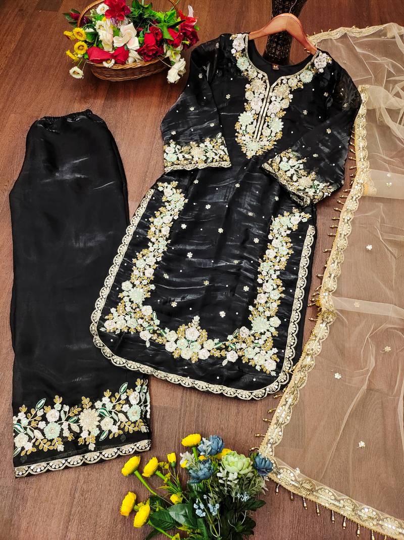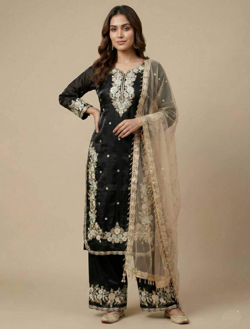 | Product Name | Black Designer Pure Jimmy Choo Silk Sequins Embroidered Work Readymade Suit | |