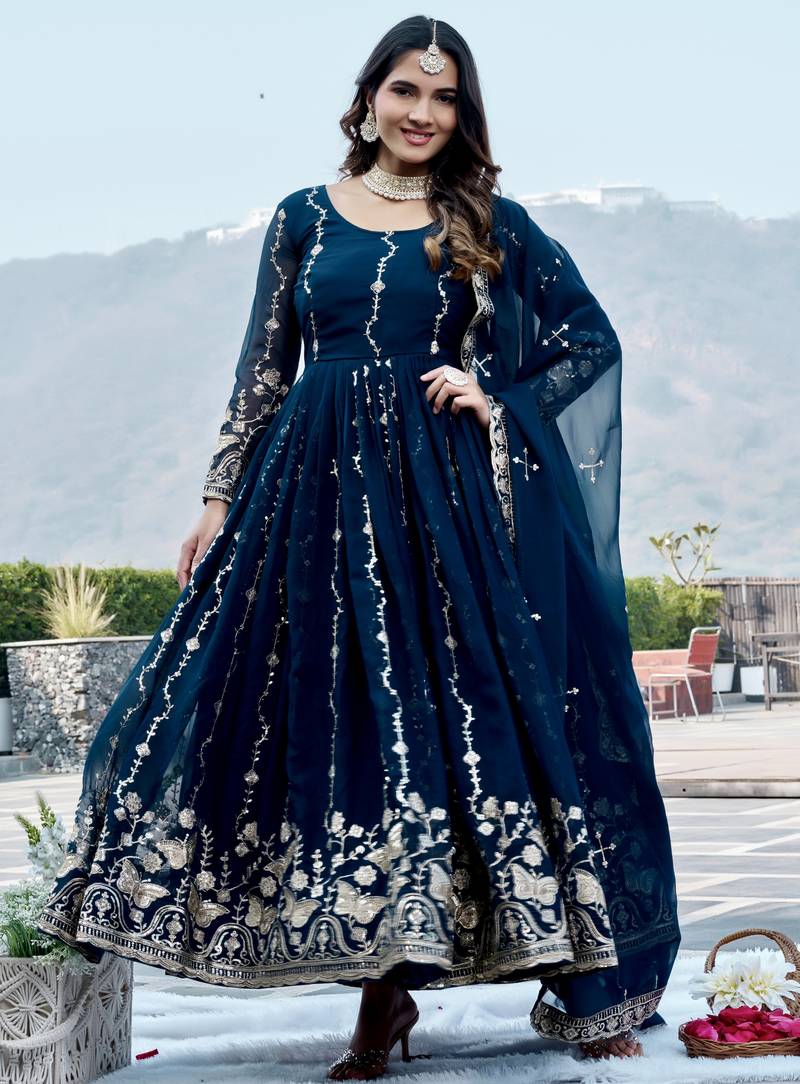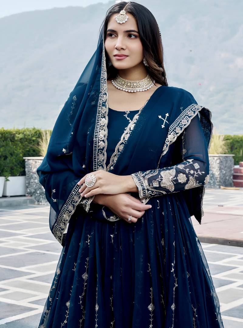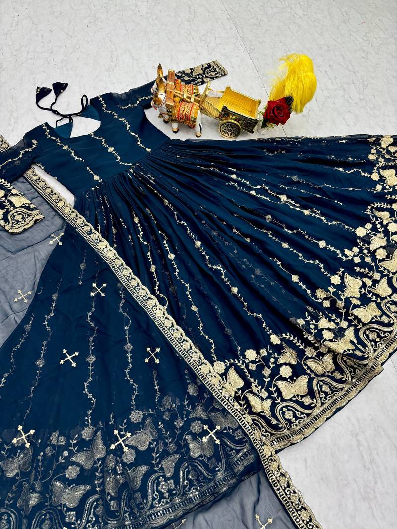 Blue color designer faux georgette sequins embroidered work readymade suit stitched