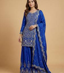 | Product Name | Blue Designer Chinon Sequins Embroidered Work Readymade Suit | |