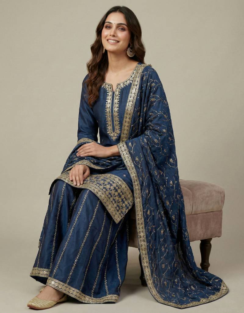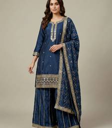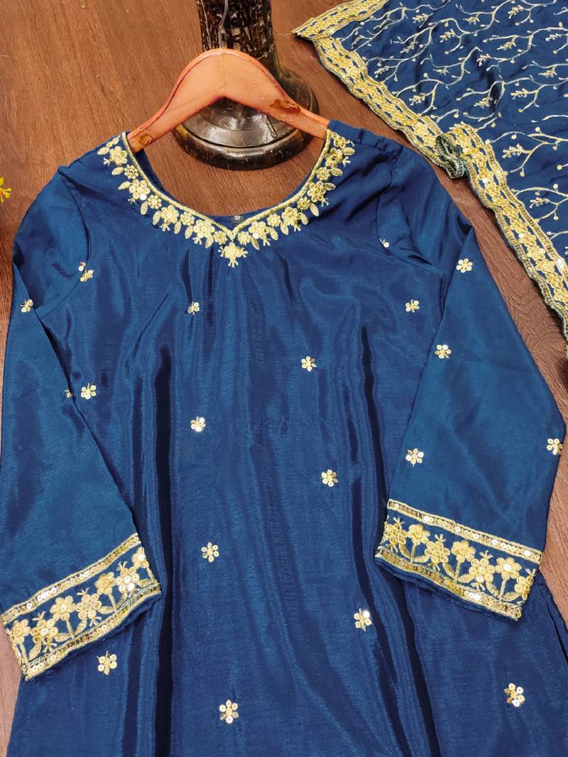 | Product Name | Blue Designer Chinon Sequins Embroidered Work Readymade Suit | |