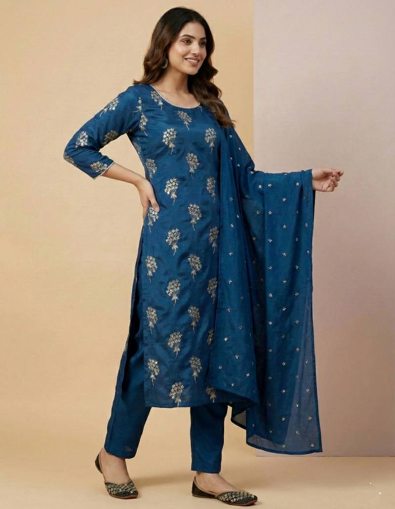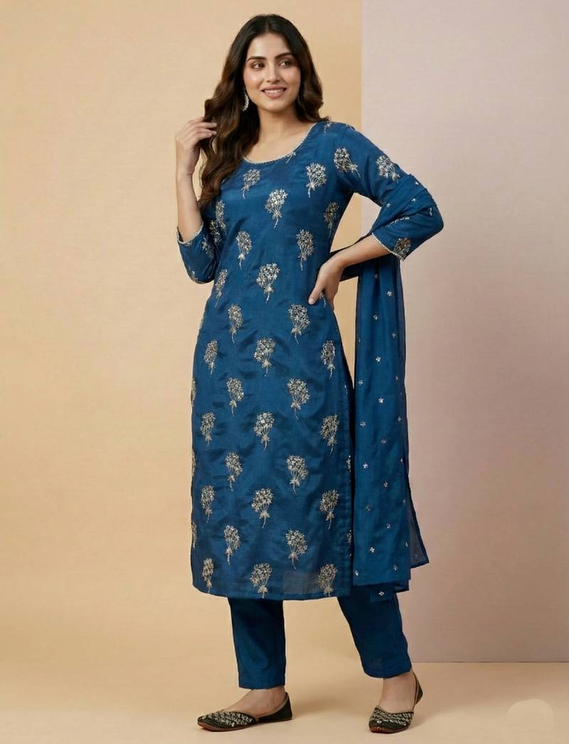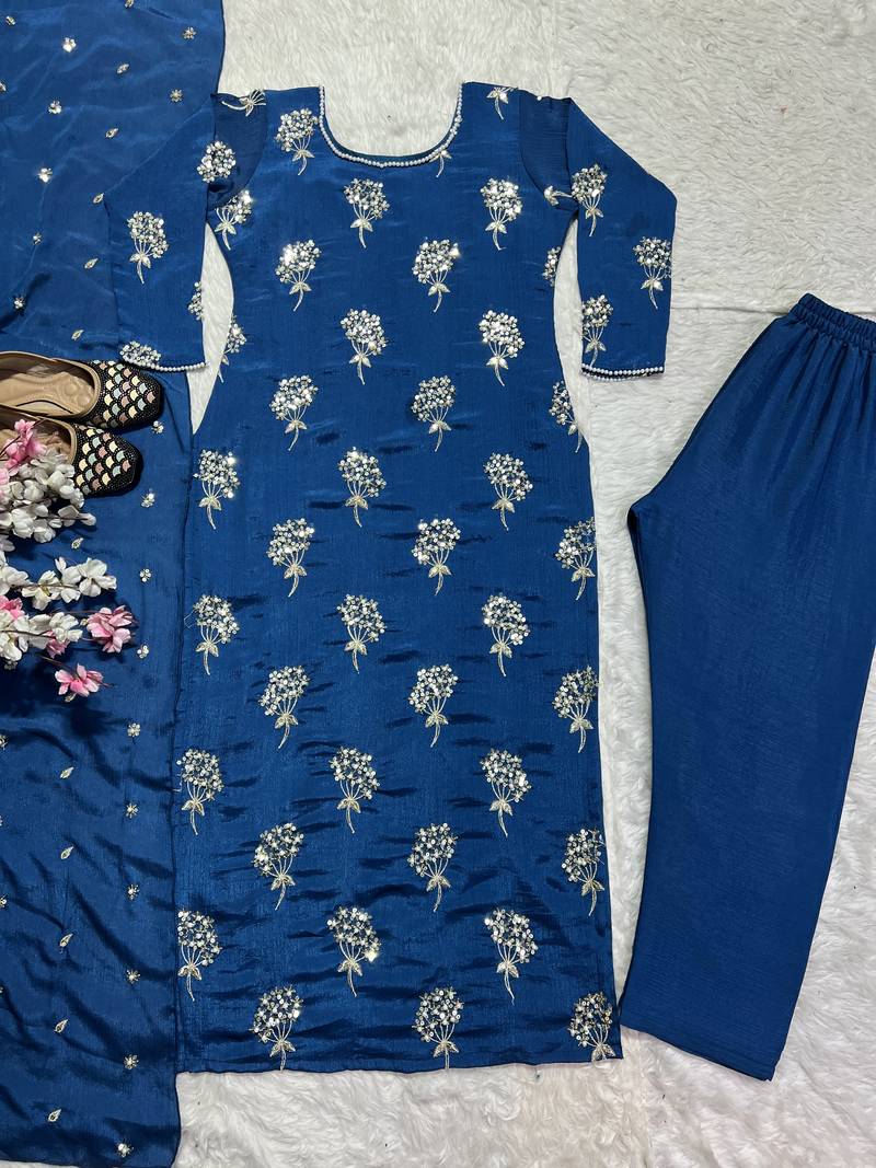 | Product Name | Blue Designer Heavy Chinon Sequins Embroidered Work Readymade Suit | |