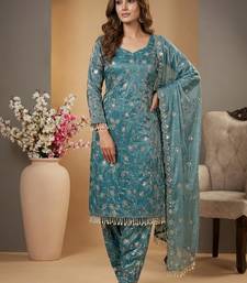 Blue designer heavy fandy crush silk sequins embroidered work readymade suit stitched