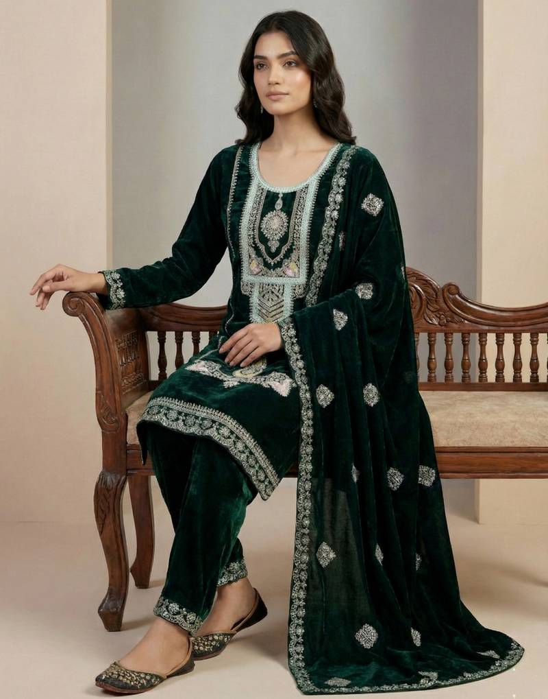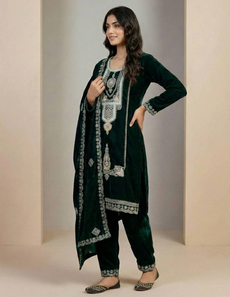 | Product Name | Green Designer Pure Heavy Viscous Velvet Sequins Embroidered Work Readymade Suit | |