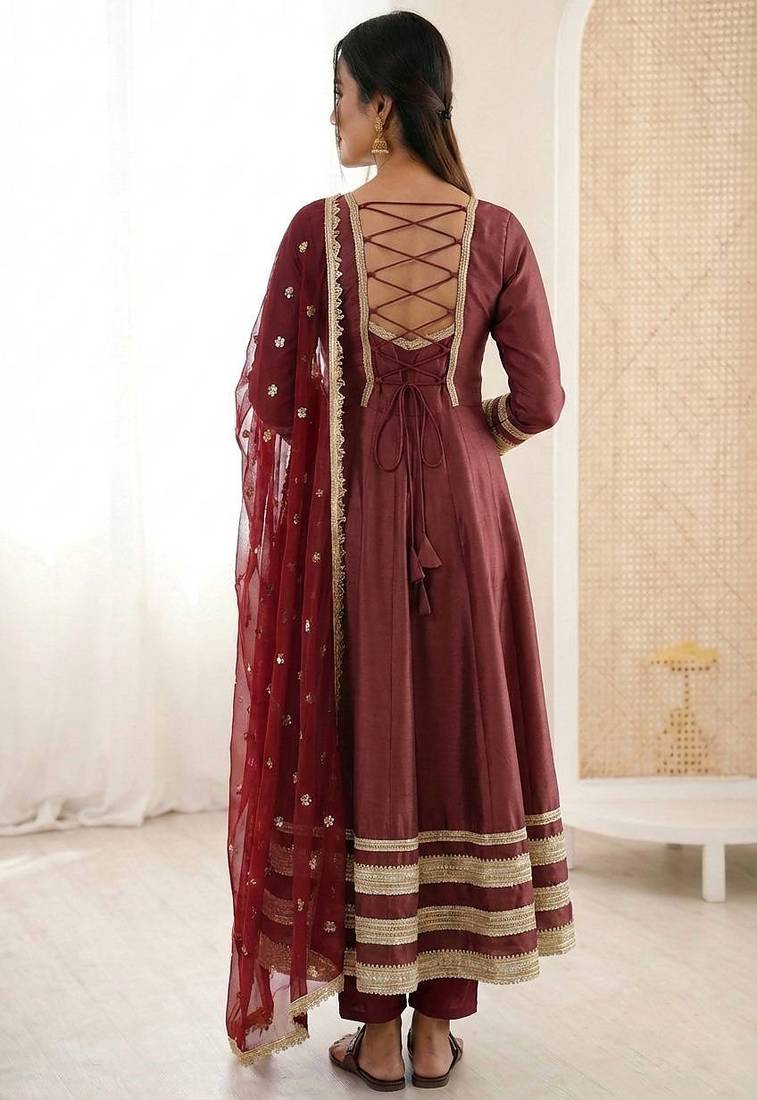 | Product Name | Maroon Color Designer Cosmos Gold Silk Lace Work Readymade Suit | |