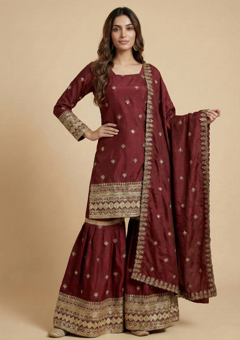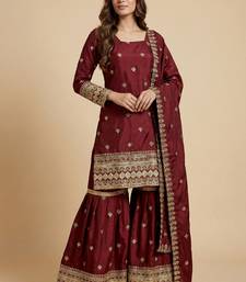 | Product Name | Maroon Designer Chinon Sequins Embroidered Work Readymade Suit | |