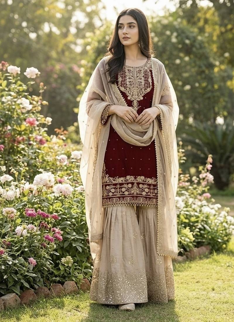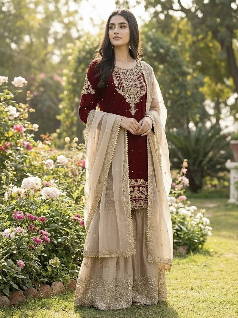 | Product Name | Maroon Designer Heavy Gmy Silk Sequins Embroidered Work Readymade Suit | |