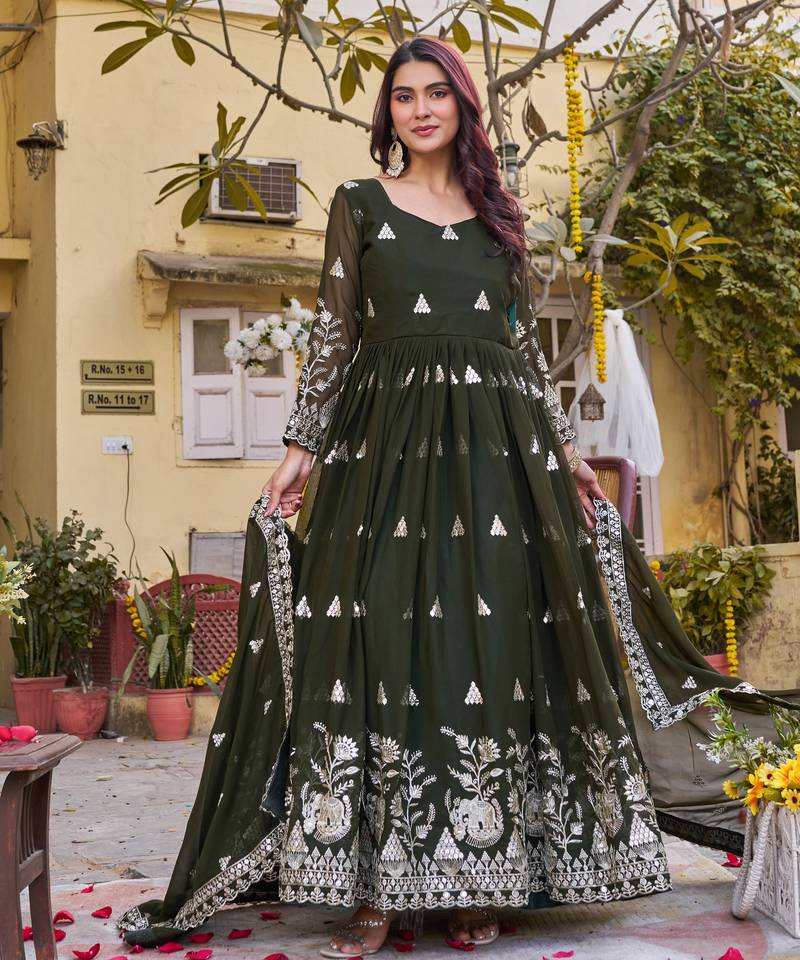| Product Name | Mehendi Green Color Designer Fox Georgette Sequins Embroidered Work Readymade Suit | |