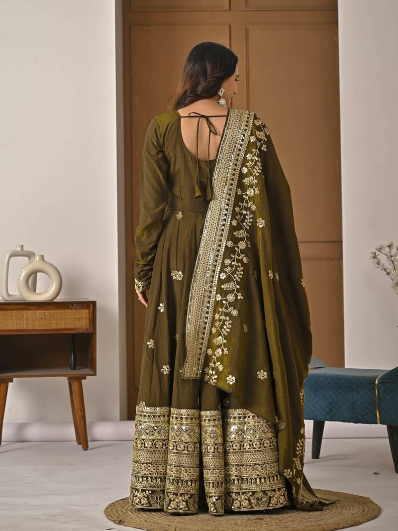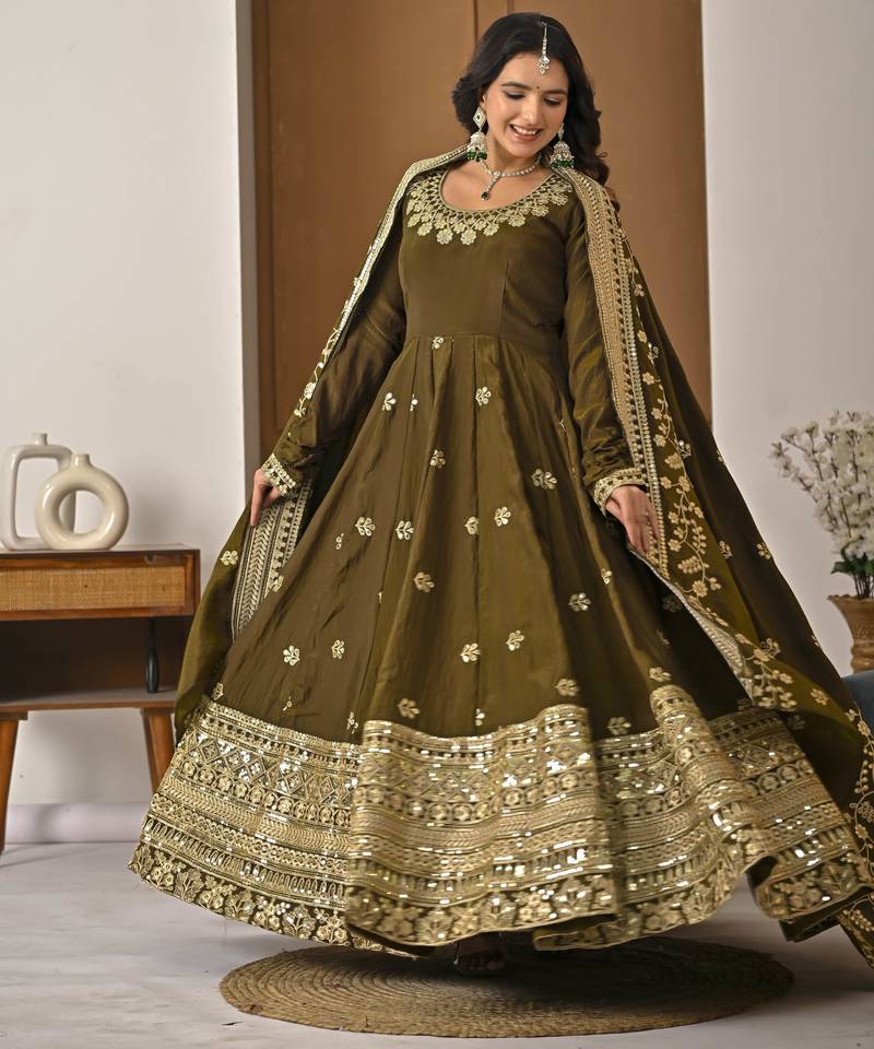 Mehendi green designer heavy nc vichitra silk sequins embroidered work readymade suit stitched