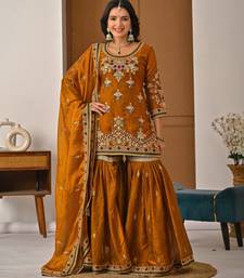 Mustard designer heavy fandy silk sequins embroidered work readymade suit stitched