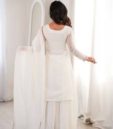 Off white color designer heavy pure soft crunchy silk sequins embroidered work readymade suit stitched