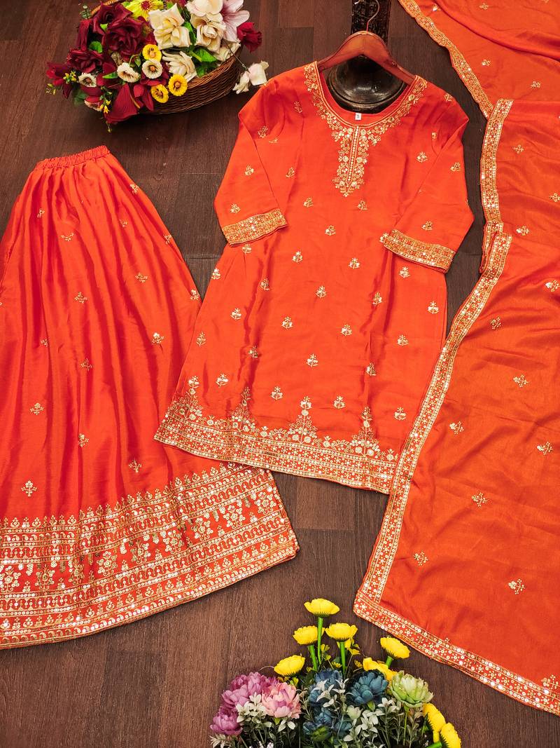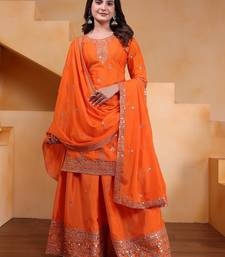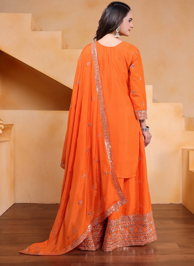 | Product Name | Orange Designer Chinon Sequins Embroidered Work Readymade Suit | |