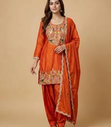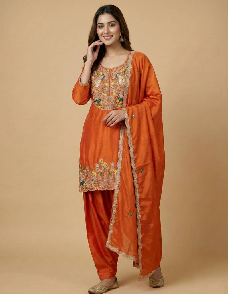 | Product Name | Orange Designer Chinon Sequins Embroidered Work Readymade Suit | |
