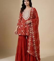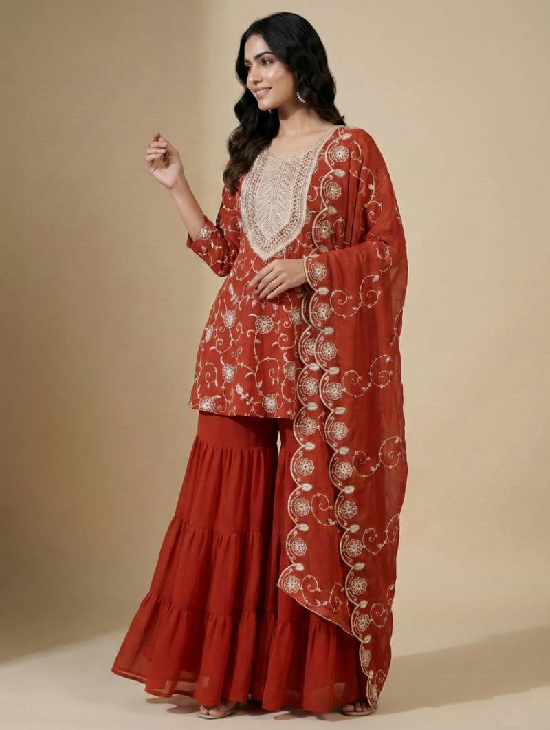 | Product Name | Orange Designer Fox Georgette Embroidered Work Readymade Suit | |