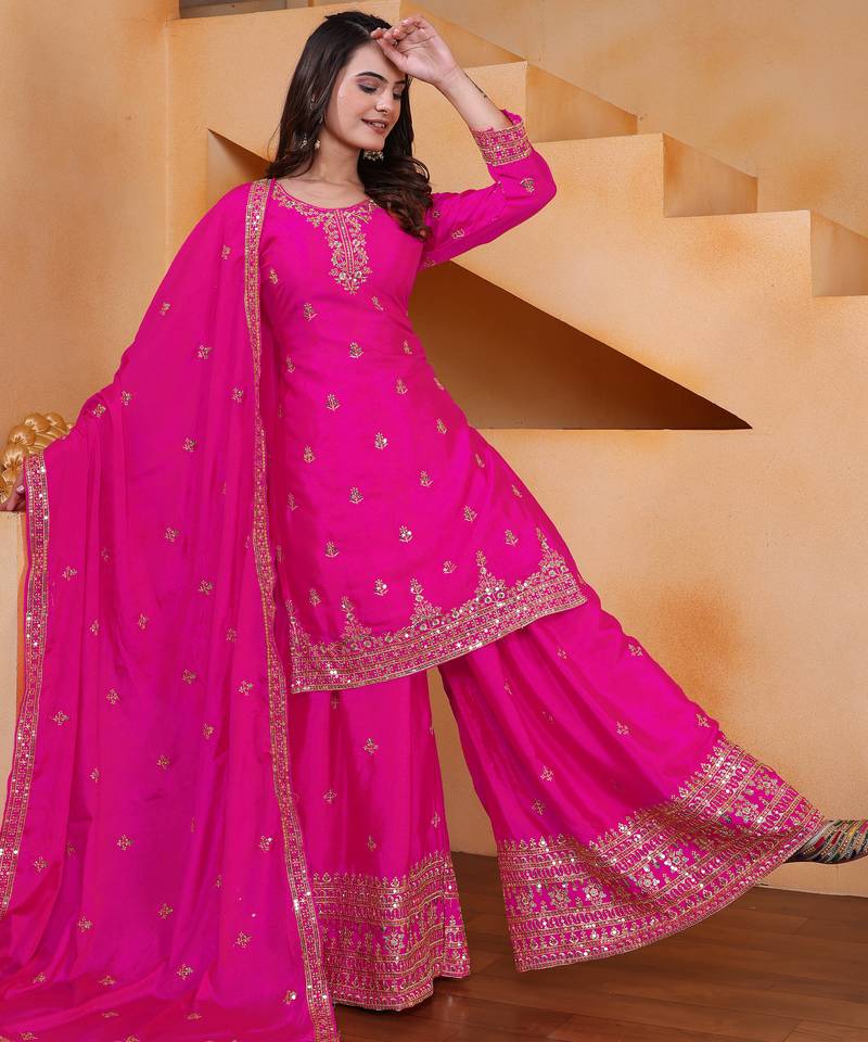 | Product Name | Pink Designer Chinon Sequins Embroidered Work Readymade Suit | |