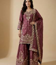 | Product Name | Pink Designer Chinon Sequins Embroidered Work Readymade Suit | |