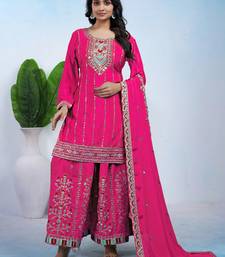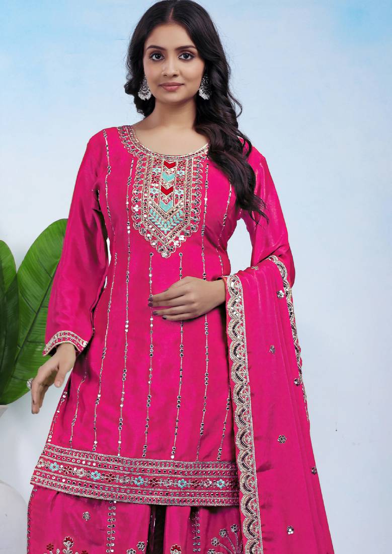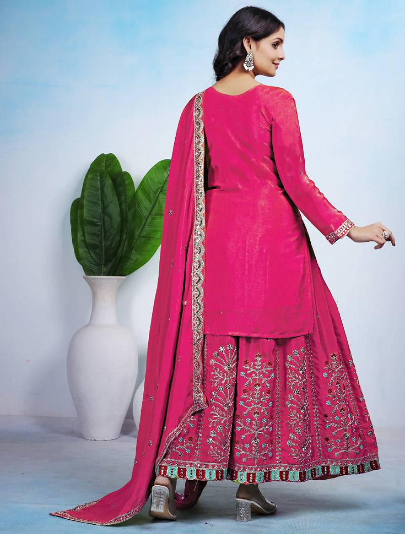 | Product Name | Pink Designer Chinon Sequins Embroidered Work Readymade Suit | |
