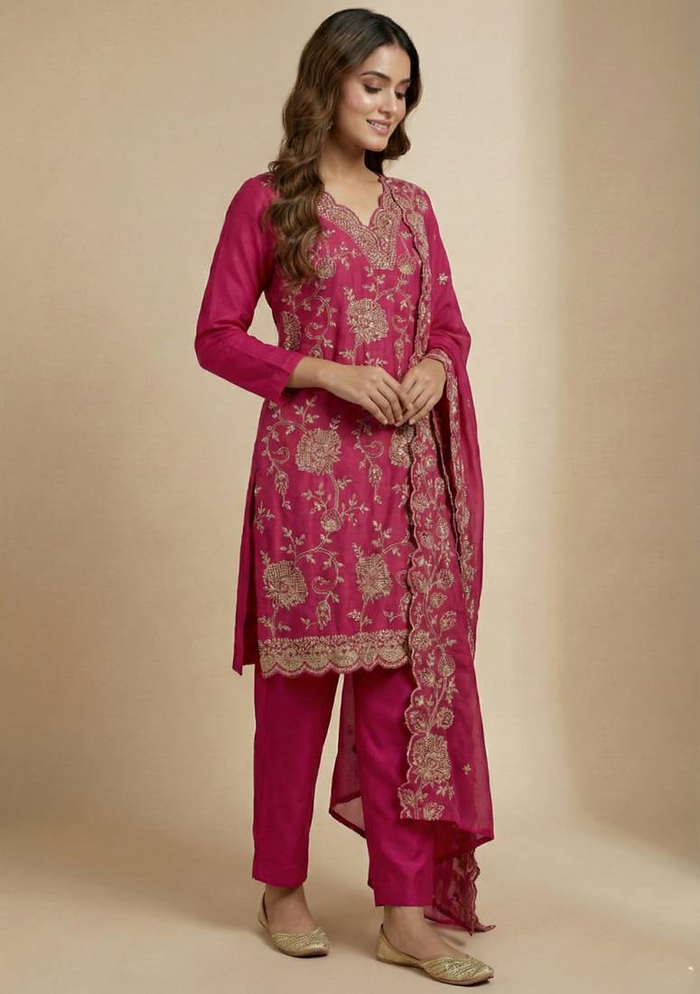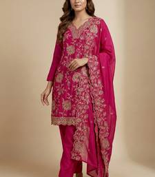 | Product Name | Pink Designer Chinon Sequins Embroidered Work Readymade Suit | |