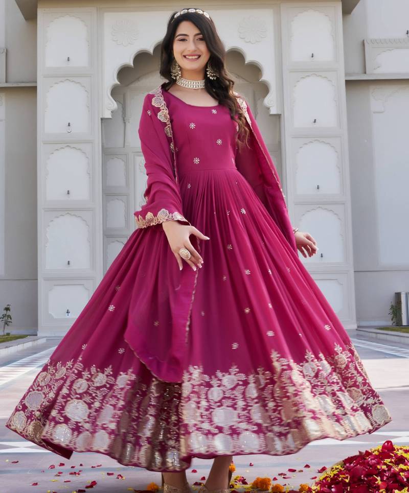 Product Name Pink Designer Fox Georgette Sequins Embroidered Work Readymade Suit