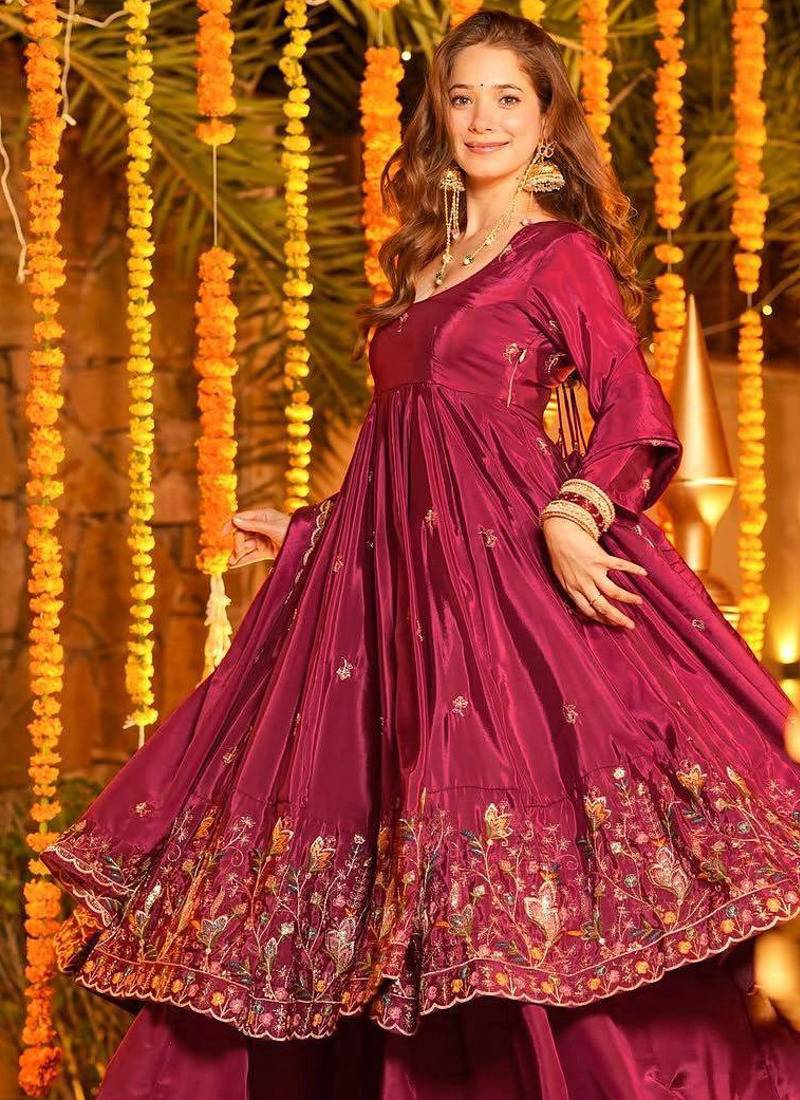 | Product Name | Pink Designer Heavy Natural Crep Silk Sequins Embroidered Work Readymade Suit | |