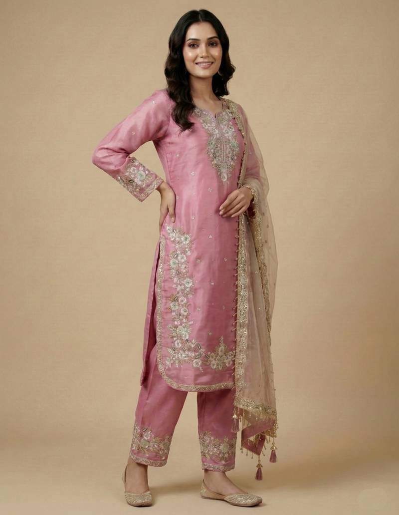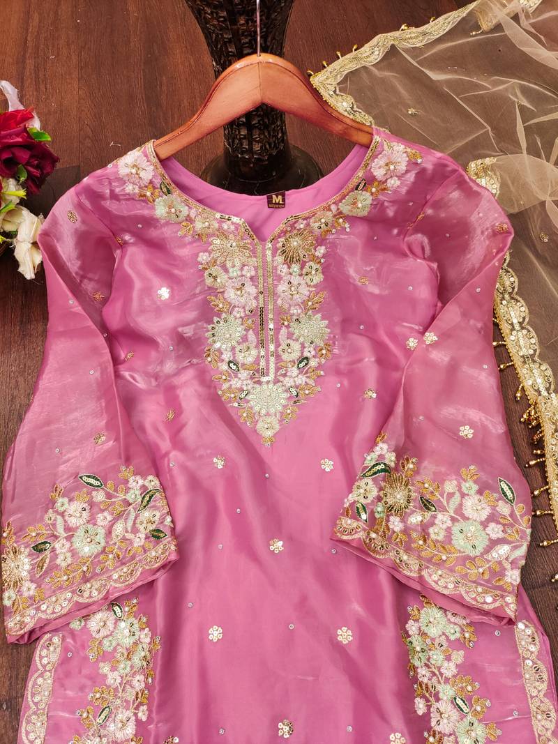| Product Name | Pink Designer Pure Jimmy Choo Silk Sequins Embroidered Work Readymade Suit | |