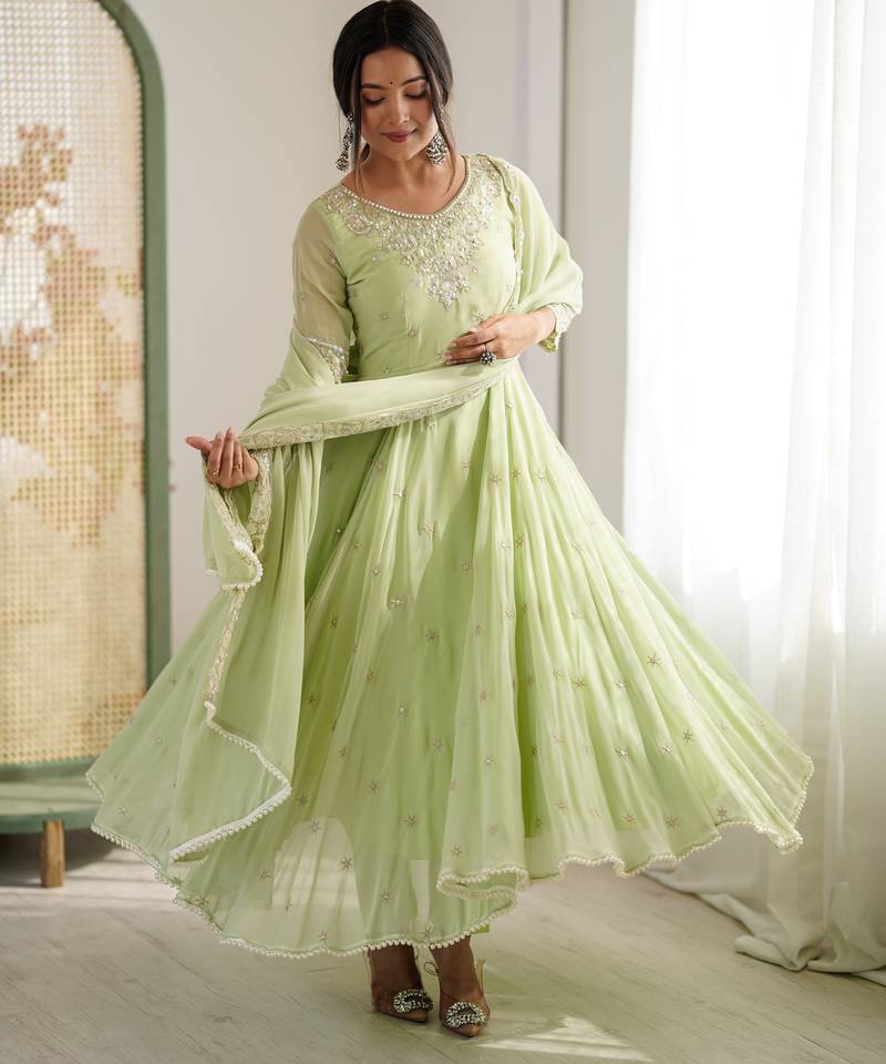 | Product Name | Pista Color Designer Heavy Blooming Faux Georgette Sequins Embroidered Work Readymade Suit | |