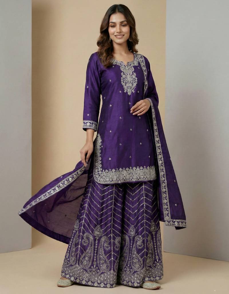 | Product Name | Purple Designer Chinon Sequins Embroidered Work Readymade Suit | |