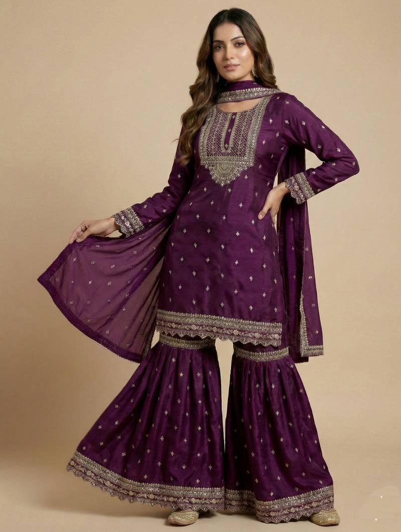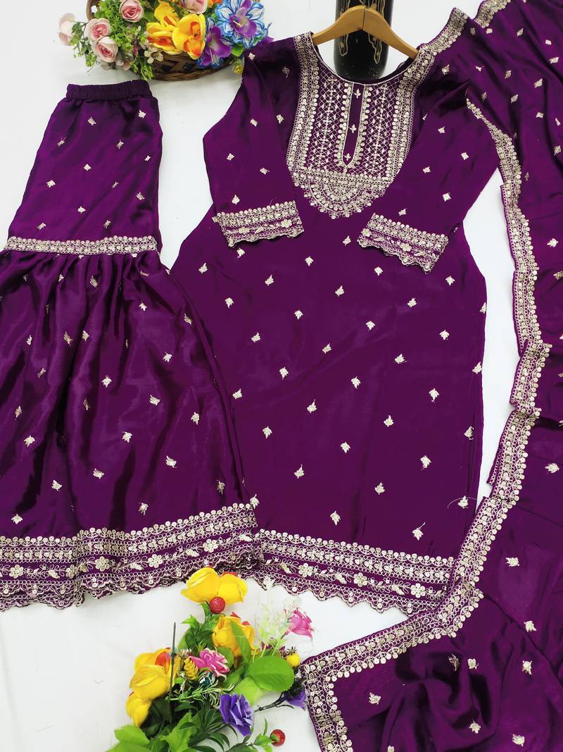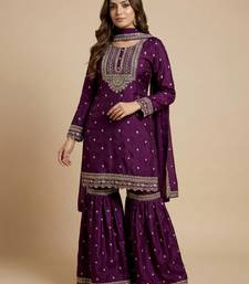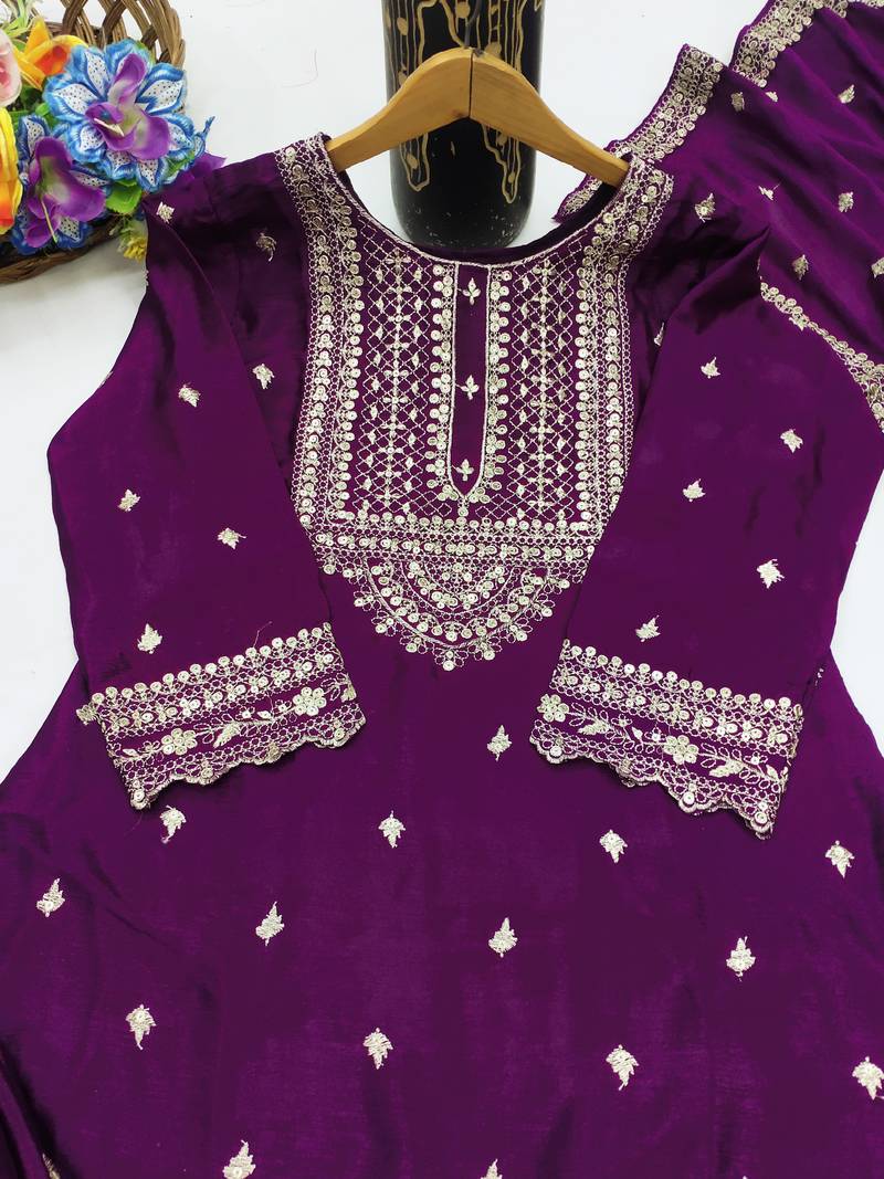 | Product Name | Purple Designer Chinon Sequins Embroidered Work Readymade Suit | |
