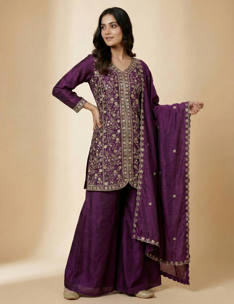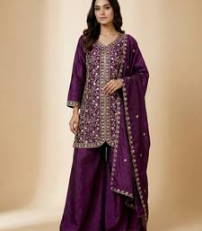 | Product Name | Purple Designer Chinon Sequins Embroidered Work Readymade Suit | |