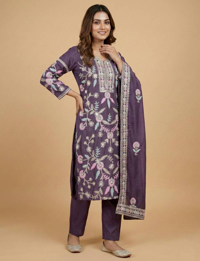 | Product Name | Purple Designer Chinon Sequins Embroidered Work Readymade Suit | |