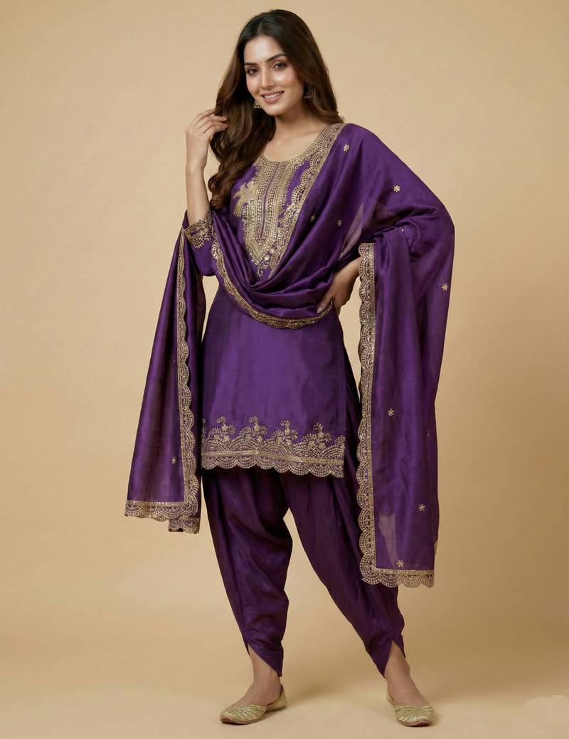 | Product Name | Purple Designer Chinon Sequins Embroidered Work Readymade Suit | |