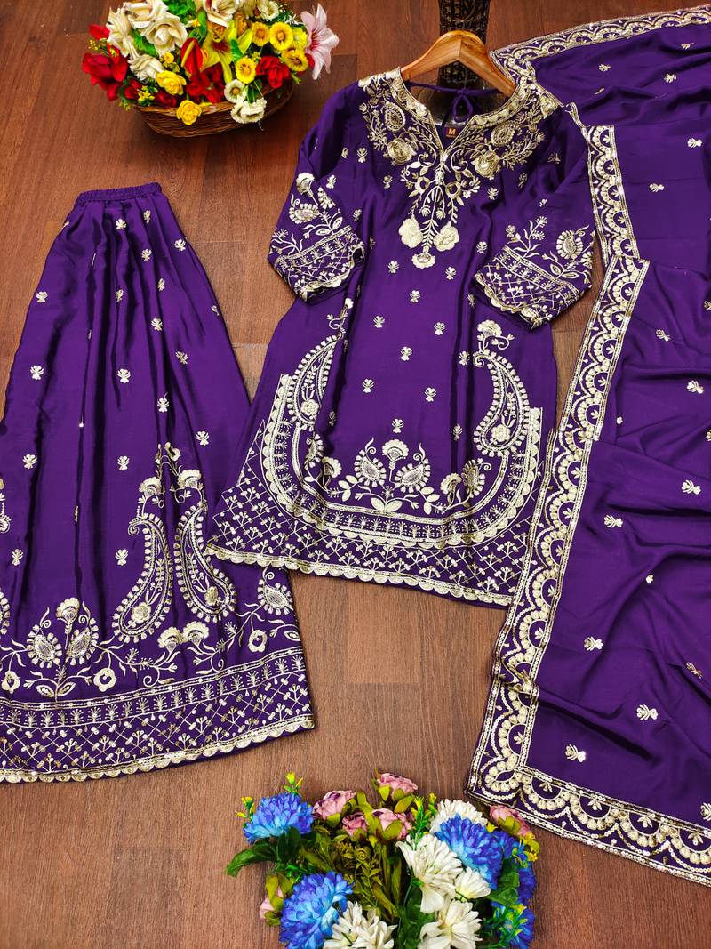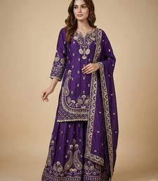 | Product Name | Purple Designer Chinon Sequins Embroidered Work Readymade Suit | |