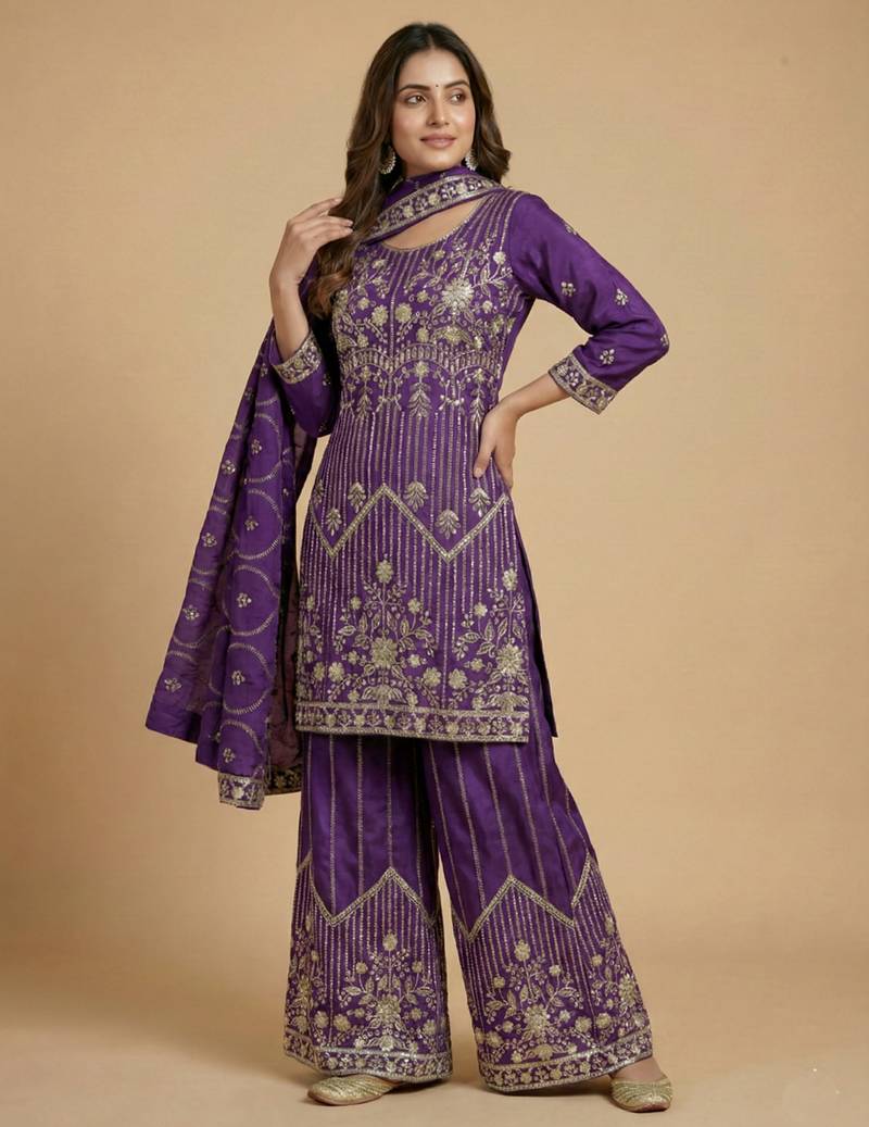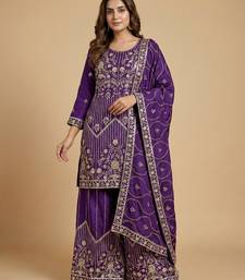 | Product Name | Purple Designer Chinon Silk Sequins Embroidered Work Readymade Suit | |