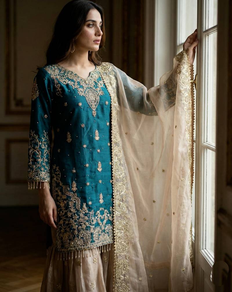 | • | Kameez | : | Color- Aqua Blue / Fabric- Silk |