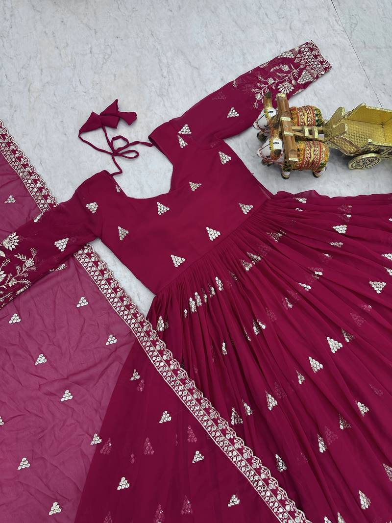 Rani pink color designer fox georgette sequins embroidered work readymade suit stitched
