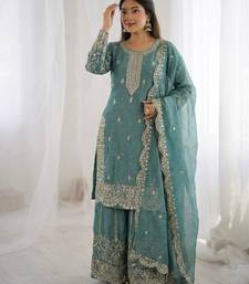 Sky blue color designer fendy silk sequins embroidered work readymade suit stitched
