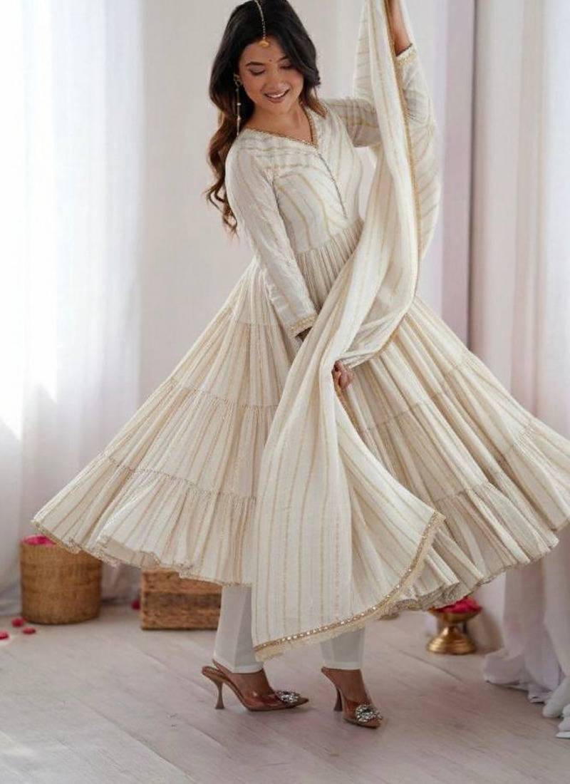 | Product Name | White Color Designer Mal Chanderi Silk Real Mirror & Handwork Readymade Suit | |