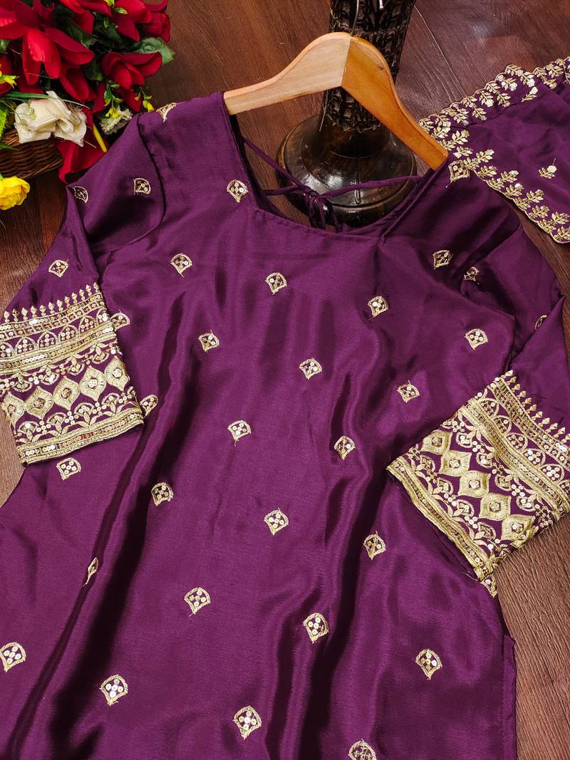 Wine designer chinon sequins embroidered work readymade suit stitched