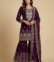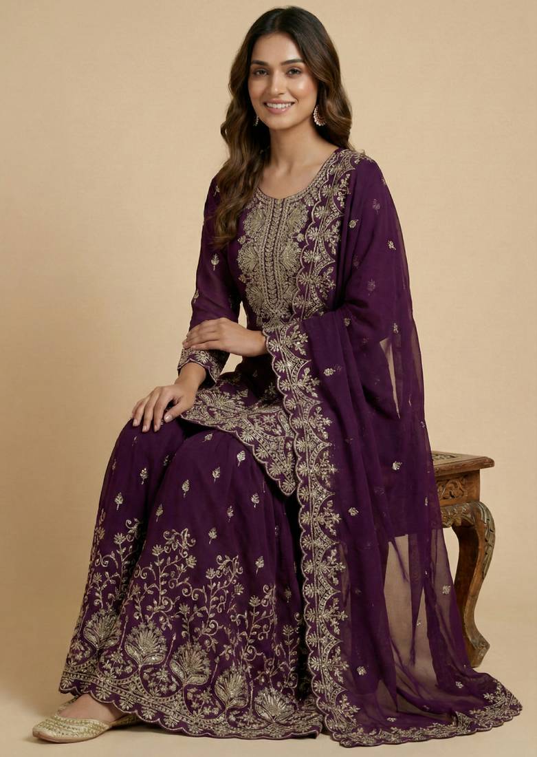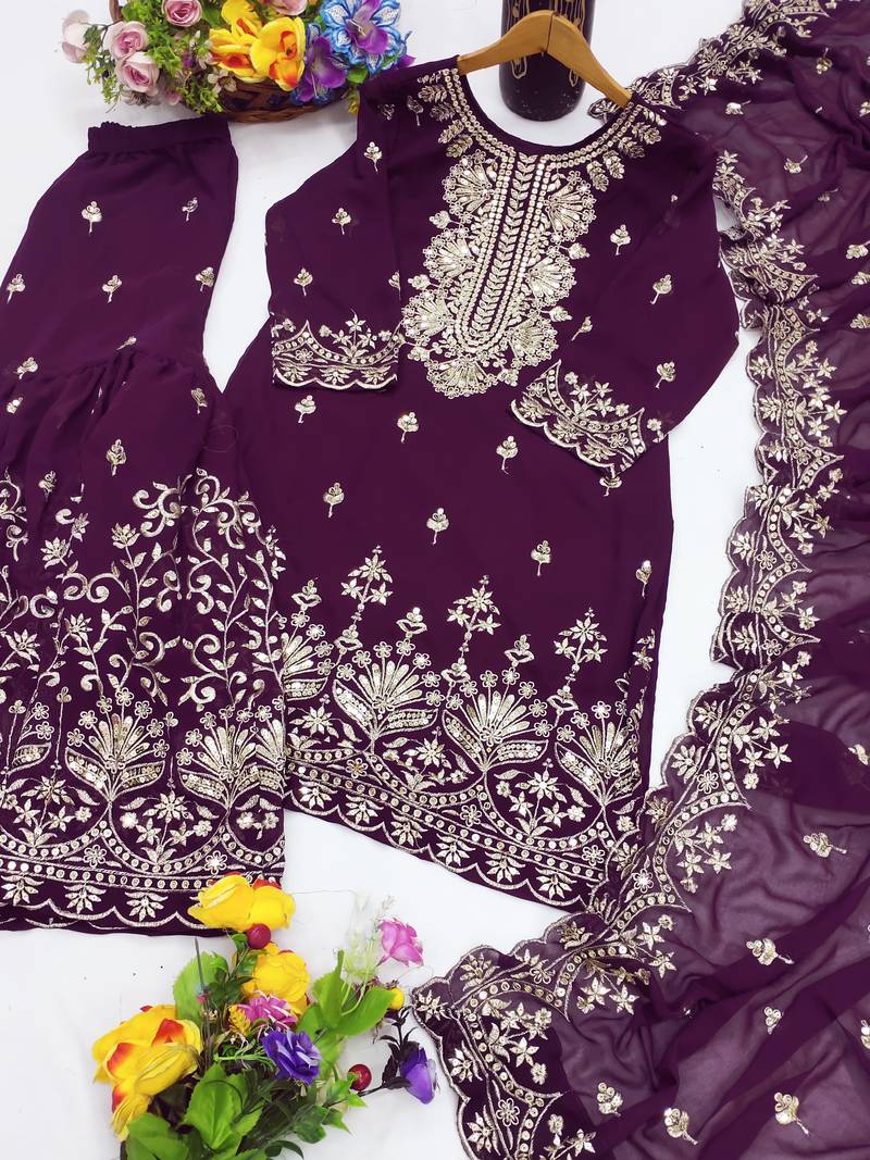 | Product Name | Wine Designer Fox Georgette Sequins Embroidered Work Readymade Suit | |