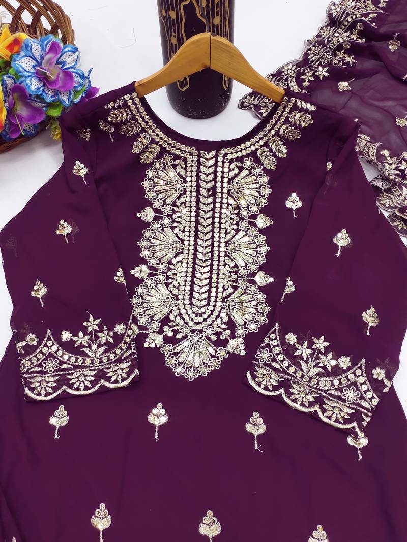 Wine designer fox georgette sequins embroidered work readymade suit stitched