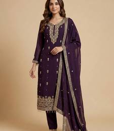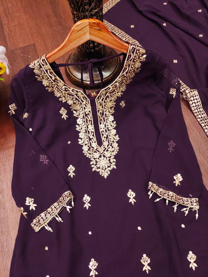 Wine designer fox georgette sequins embroidered work readymade suit stitched