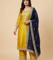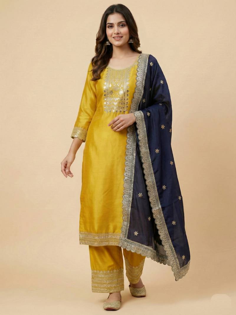 | Product Name | Yellow Designer Chinon Sequins Embroidered Work Readymade Suit | |