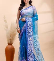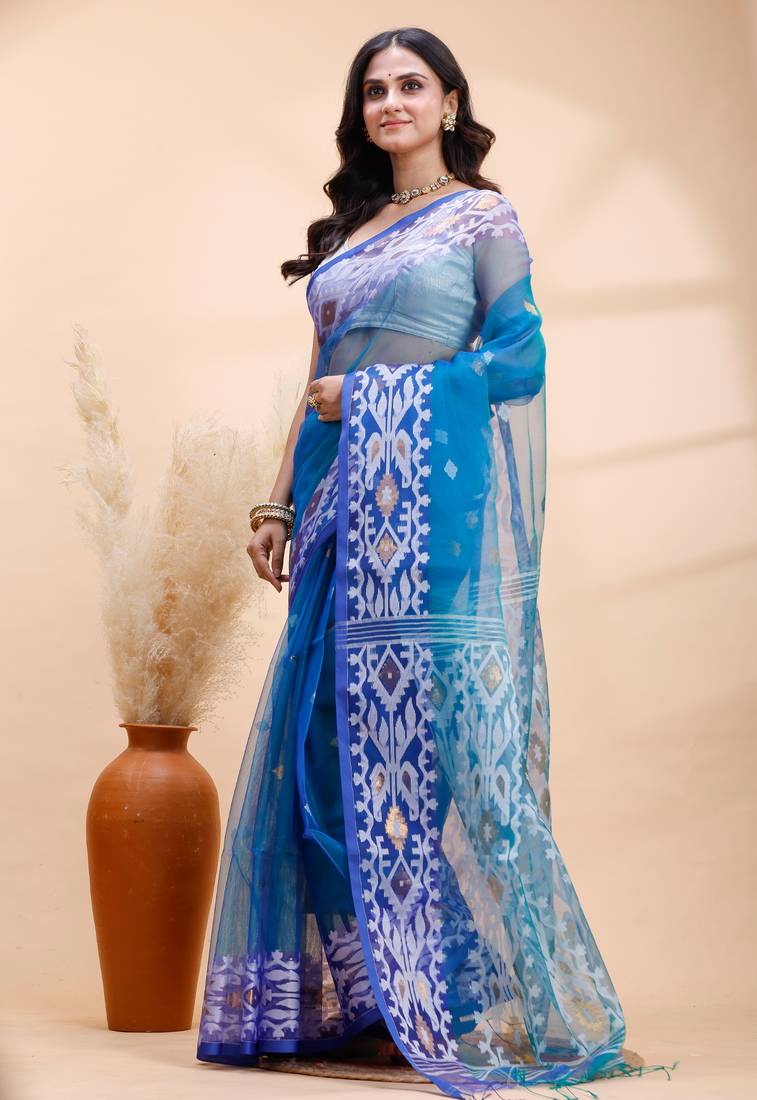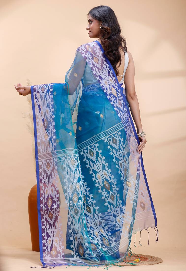 | Product Name | Blue Dual Toned Muslin Saree With Delicate Jamdani Motifs And Graceful Contrast Border | |