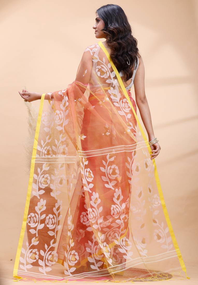 | Product Name | Coral Dual Toned Muslin Saree With Delicate Jamdani Motifs And Graceful Contrast Border | |