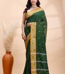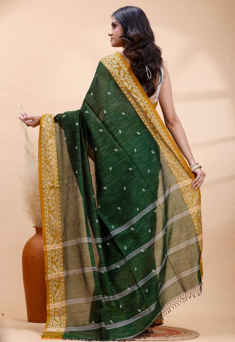 | Product Name | Dark Green Handloom Cotton Saree With Mustard Yellow Heritage Border | |