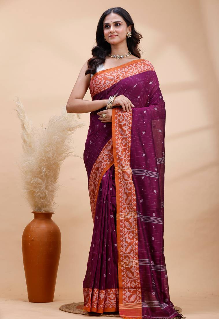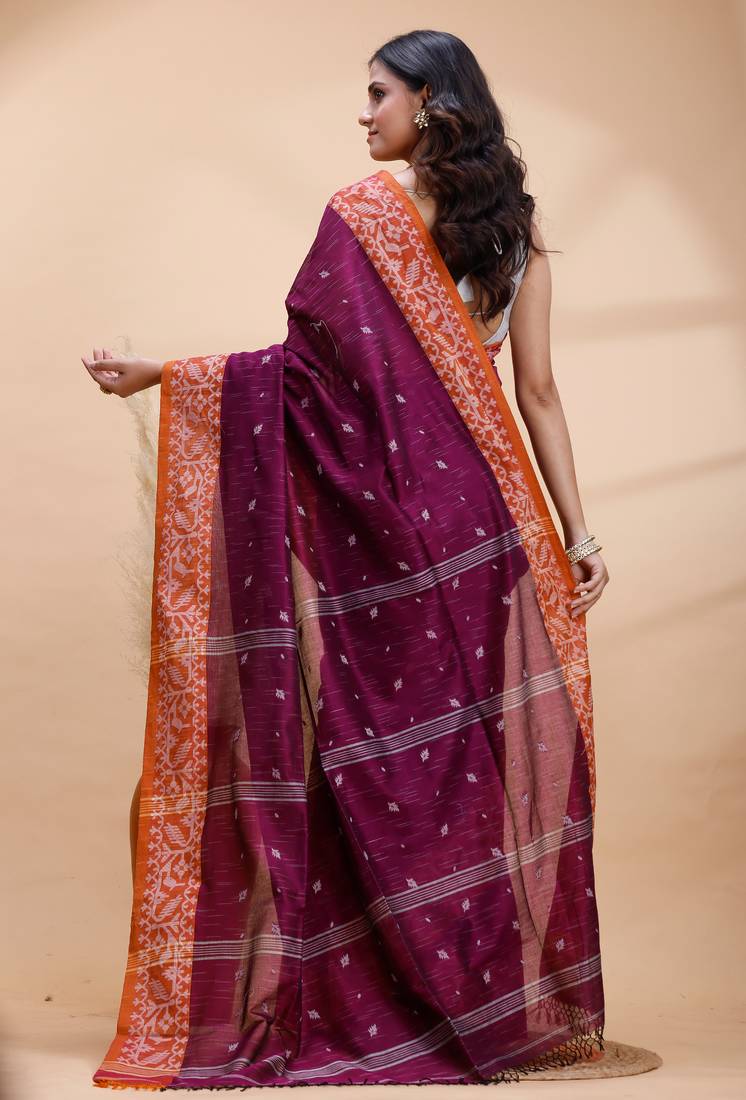 | Product Name | Magenta Handloom Cotton Saree With Rust Heritage Border | |