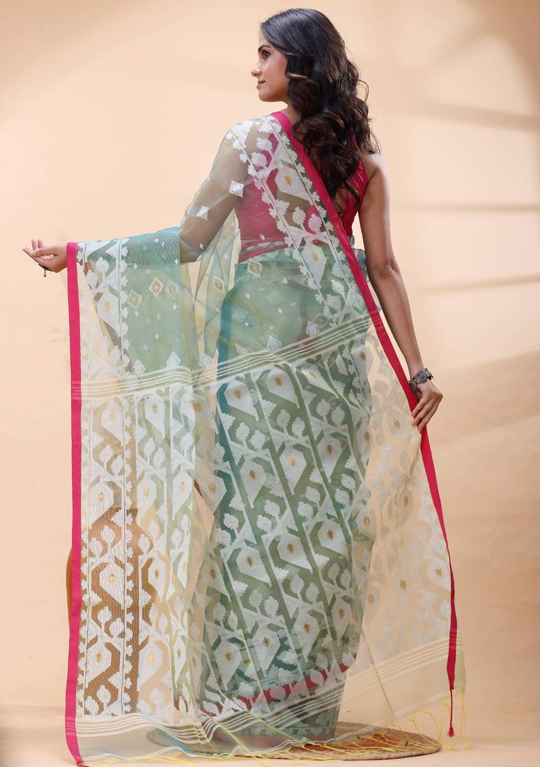 | Product Name | Sea Green Dual Toned Muslin Saree With Delicate Jamdani Motifs And Graceful Contrast Border | |