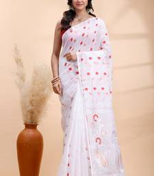 | Product Name | White Handloom Cotton Saree With Delicate Red And Golden Floral Buti And Artistic Woven Pallu | |