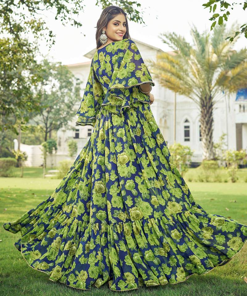 | Product Name | Women Green Floral Print Georgette Fit & Flare Gown | |
