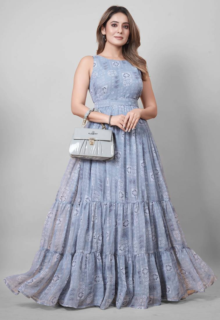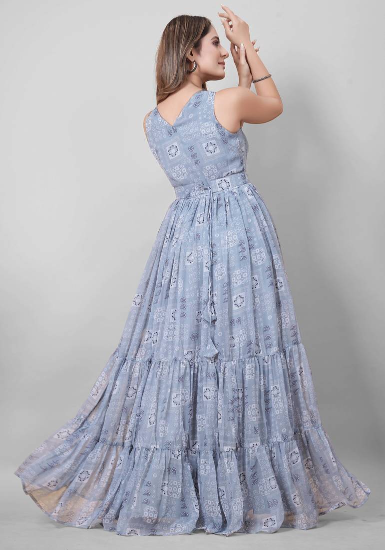 | Product Name | Women Grey Geometric Print Pattern Georgette Fit & Flare Gown | |