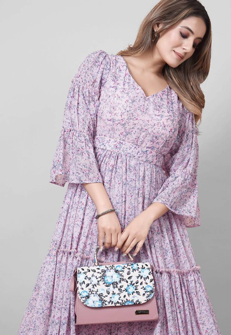 | Product Description | Elevate Your Everyday Style With This Beautifully Crafted Pink Maxi Dress, Designed To Bring Out A Soft, Feminine Elegance. Featuring A Delicate All Over Floral Print, The Dress Offers A Fresh And Romantic Appeal. The Flattering V Neckline Enhances The Neckline, While The Flowy Bell Sleeves Add A Touch Of Graceful Movement. Its Tiered Silhouette With Gentle Gathers Creates A Voluminous Yet Airy Drape, Ensuring Comfort Throughout The Day. Made From A Lightweight And Breathable Fabric, This Maxi Dress Is Perfect For Casual Outings, Brunch Dates, Daytime Celebrations, Or Relaxed Festive Occasions. Pair It With Minimal Jewelry And Flats Or Heels For An Effortlessly Chic Look. |